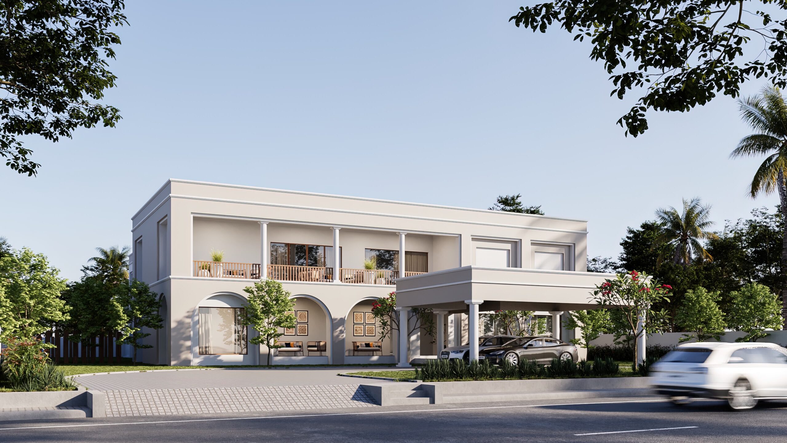 A residential project where the utilitarian spaces are bordered by arched passageways or balconies. Therefore, it prevents the harsh sunlight and heat from entering the abode.