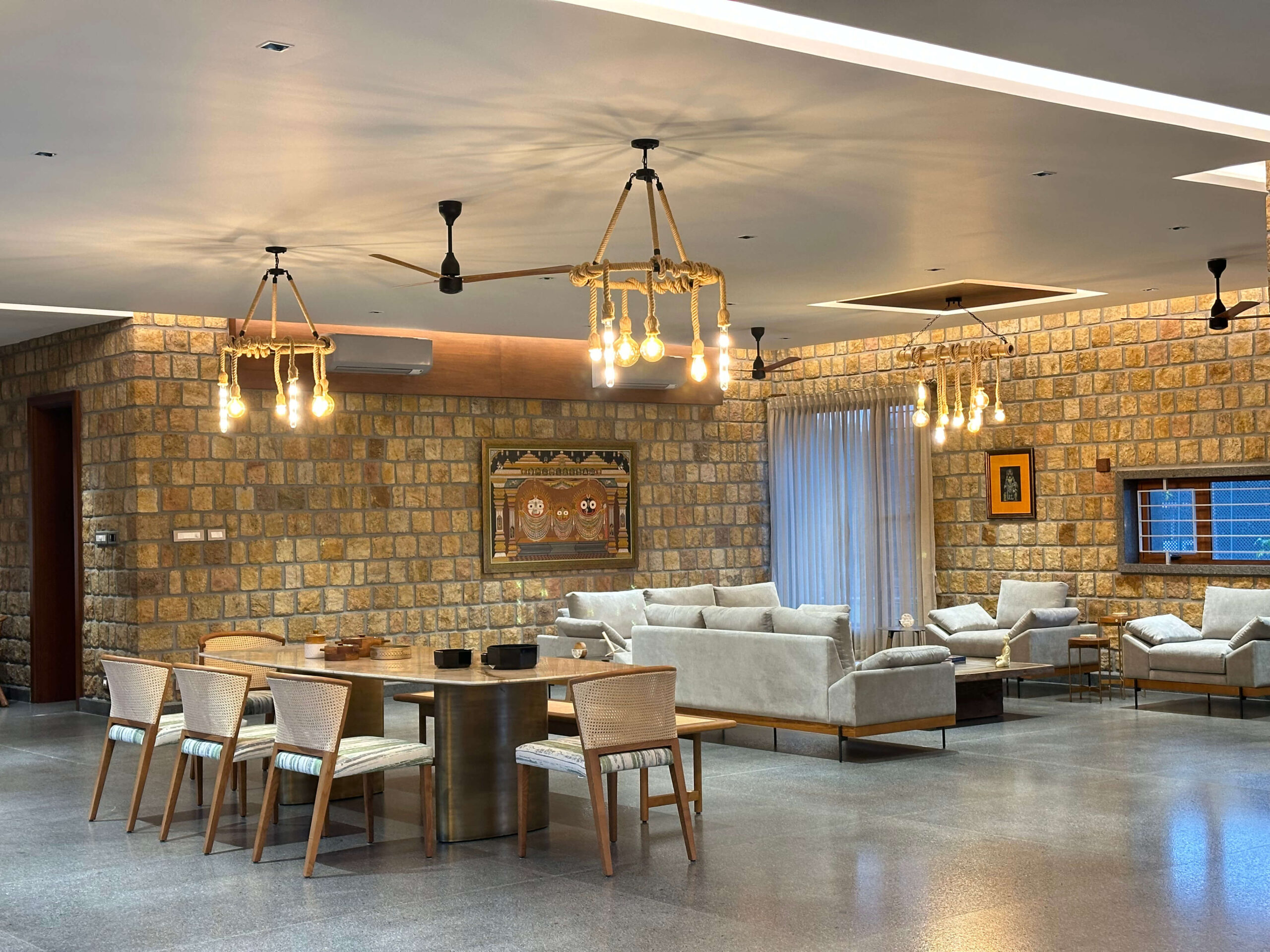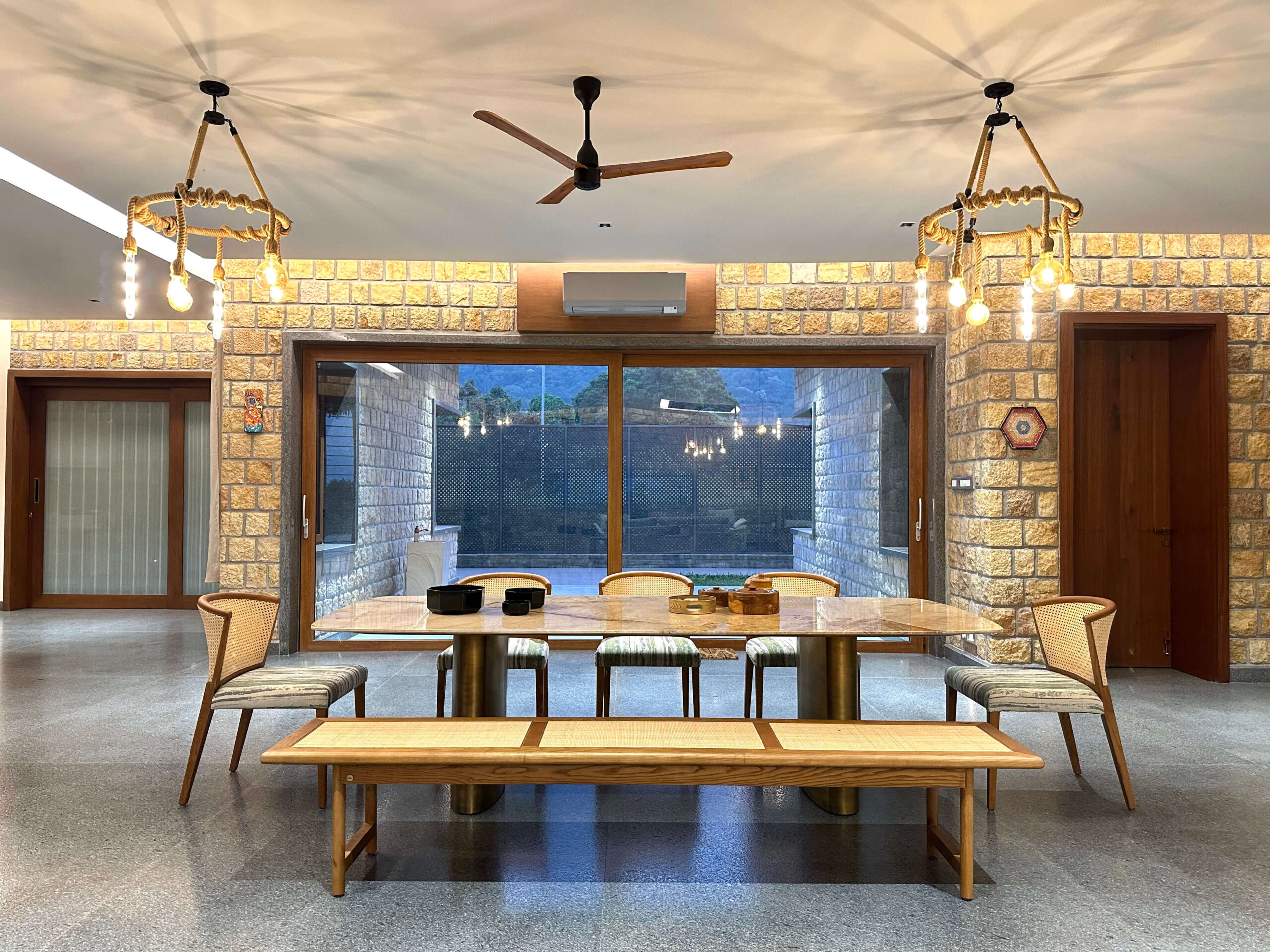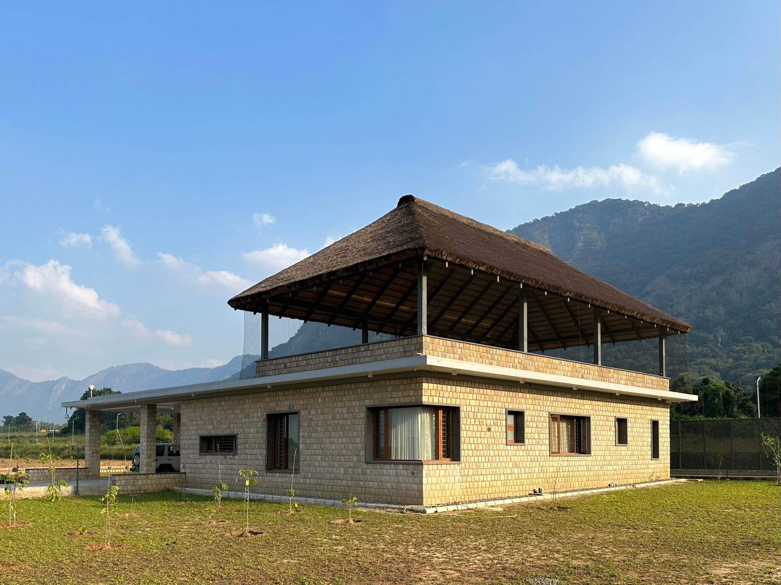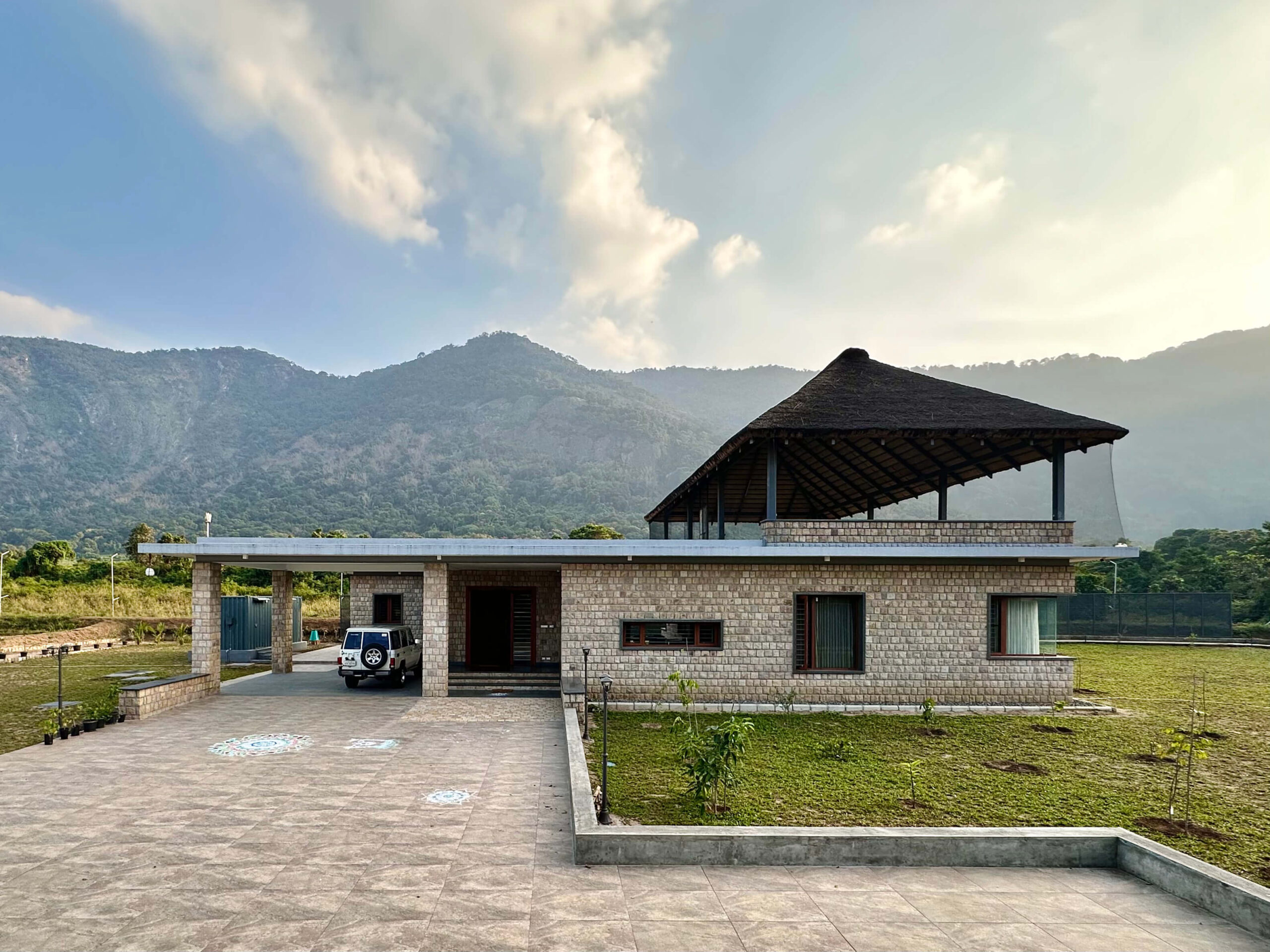 Nestled near the Western Ghats, where Nilgiris’ breath whispers, resides Evara, a second home, tucked away from the bustling city life of Coimbatore. Camouflaged within its locale, this abode reuses materials which were originally used for a factory. From the coursed ashlar masonry to the walnut veneer, the indoors seamlessly mend with the outdoors creating a smooth transition and movement. In its commitment to living with nature, Evara stands as a testament to sustainability and well-being.