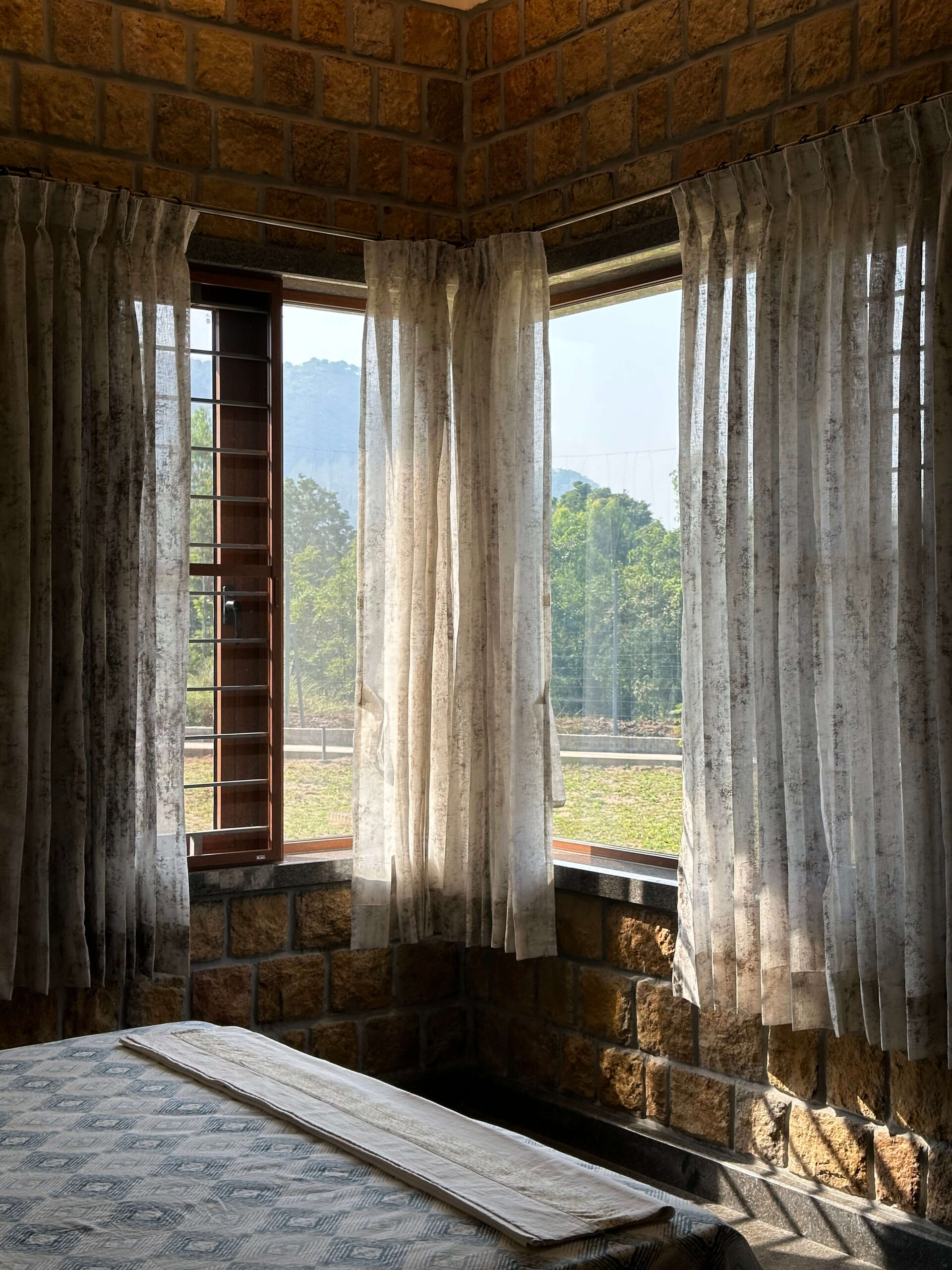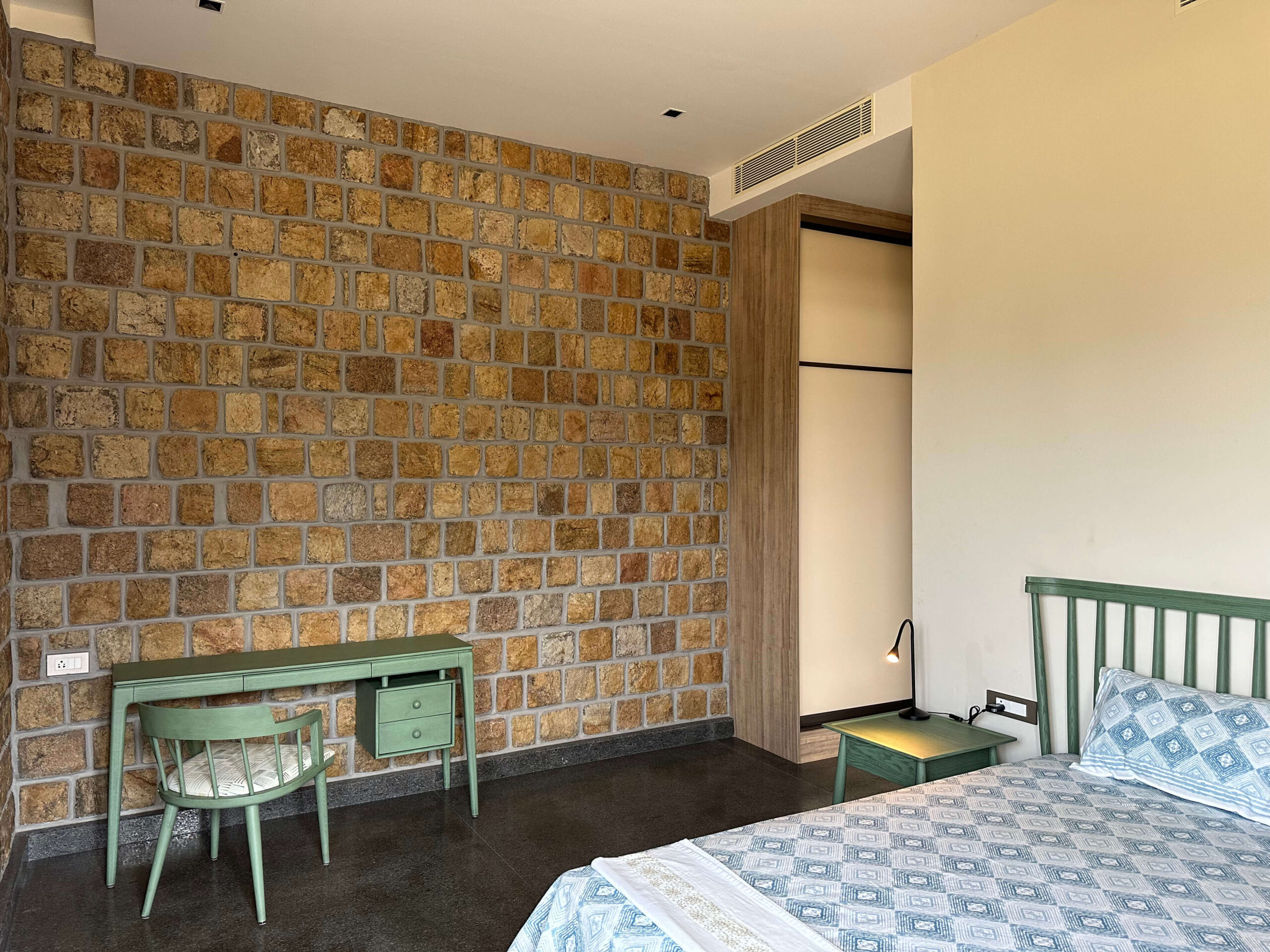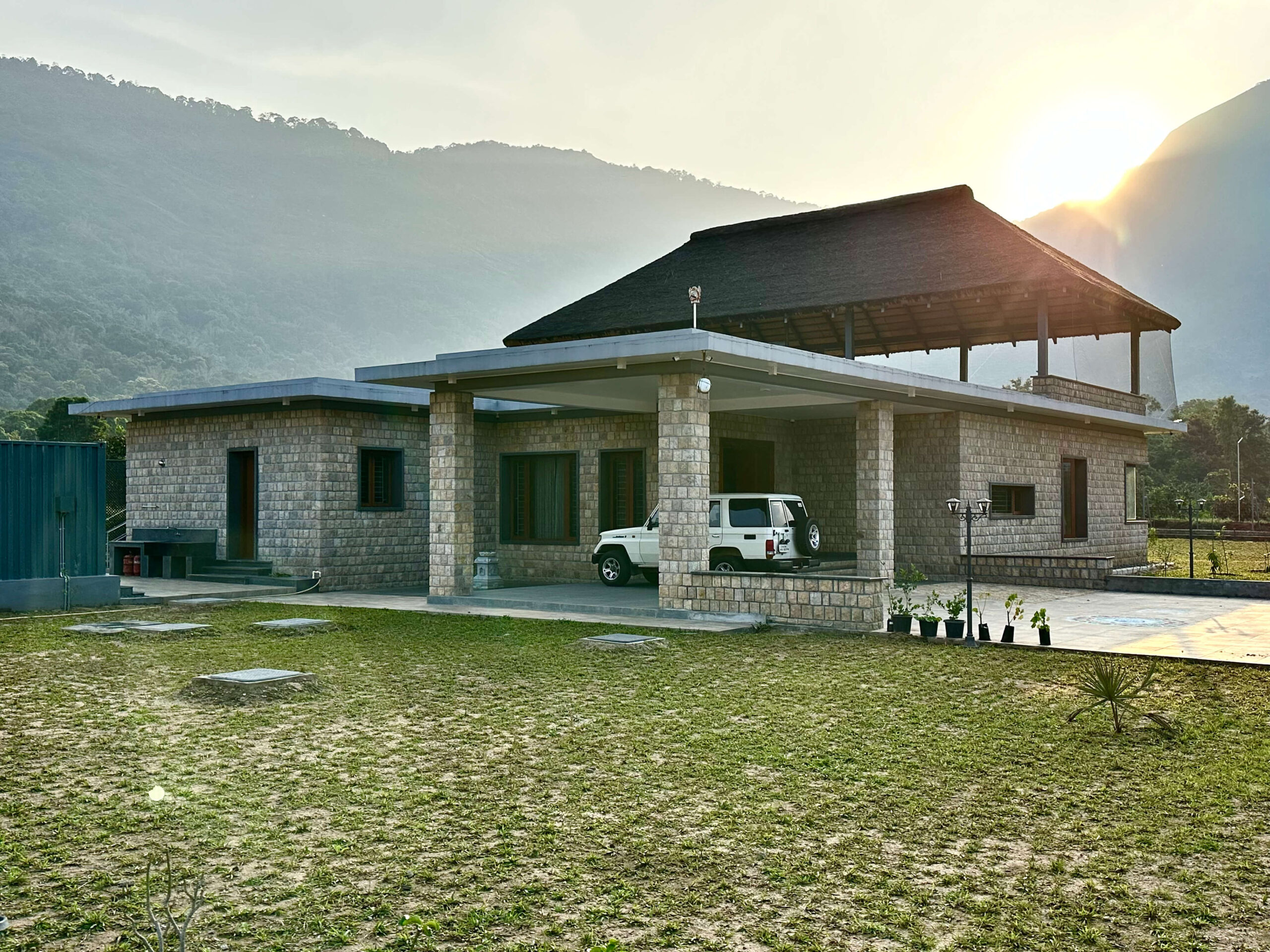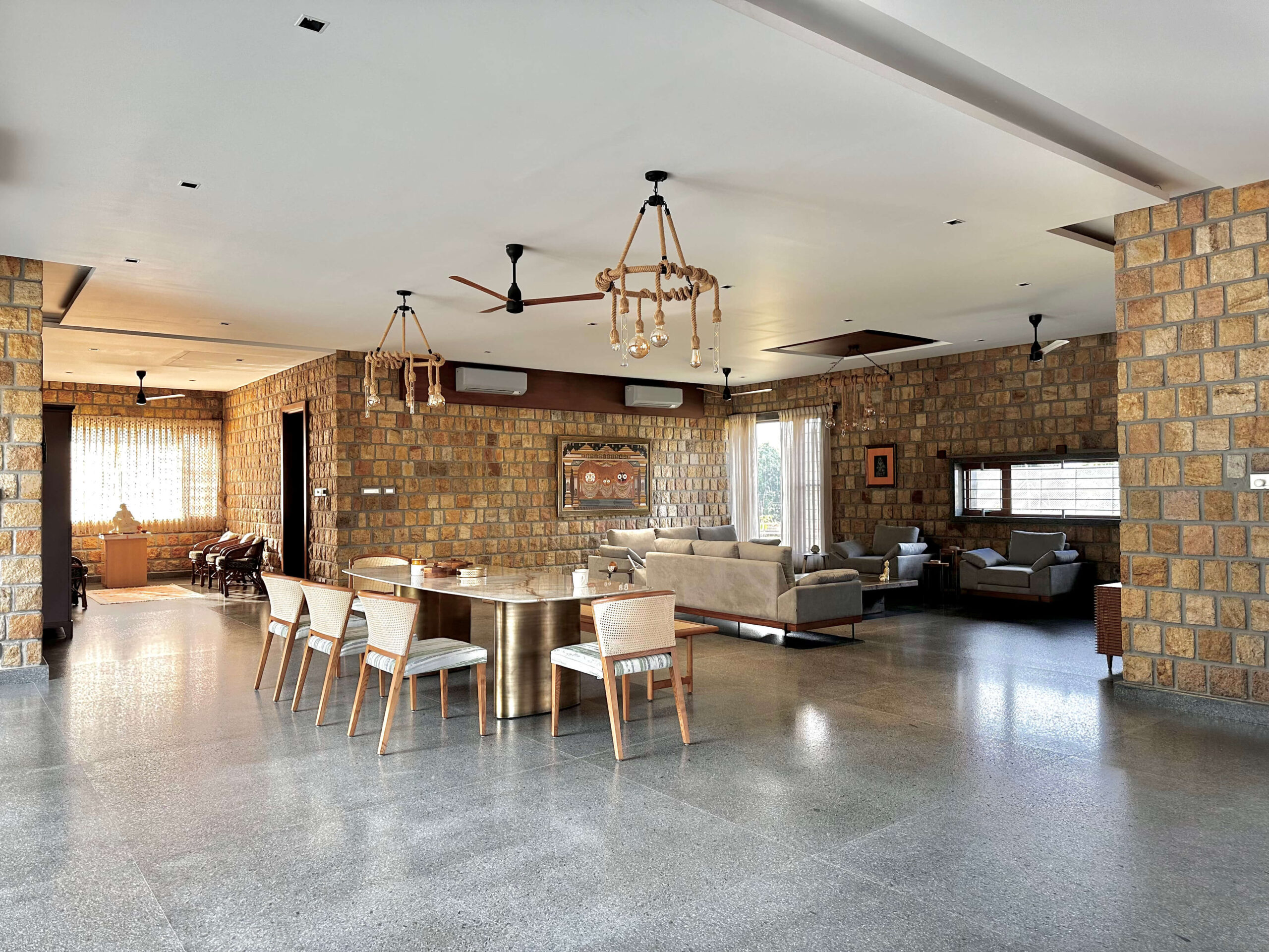 Nestled near the Western Ghats, where Nilgiris’ breath whispers, resides Evara, a second home, tucked away from the bustling city life of Coimbatore. Camouflaged within its locale, this abode reuses materials which were originally used for a factory. From the coursed ashlar masonry to the walnut veneer, the indoors seamlessly mend with the outdoors creating a smooth transition and movement. In its commitment to living with nature, Evara stands as a testament to sustainability and well-being.