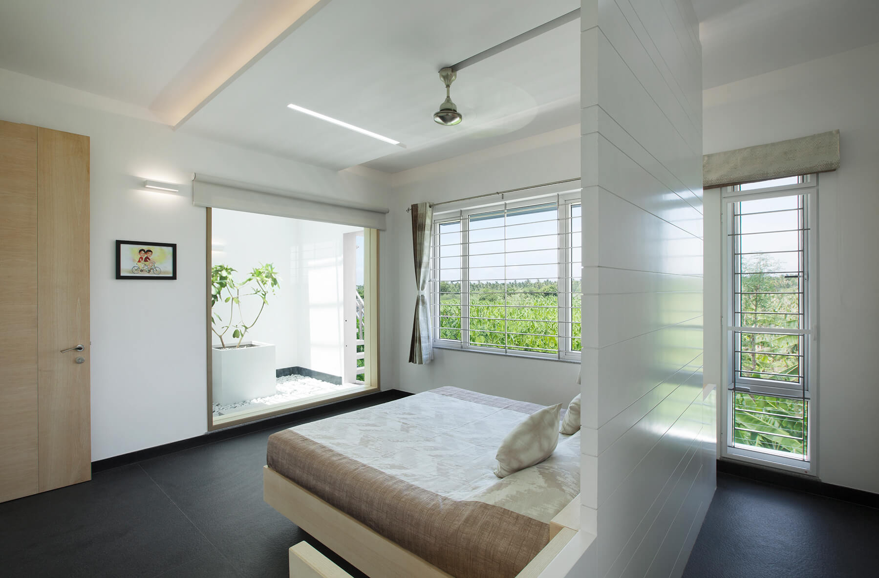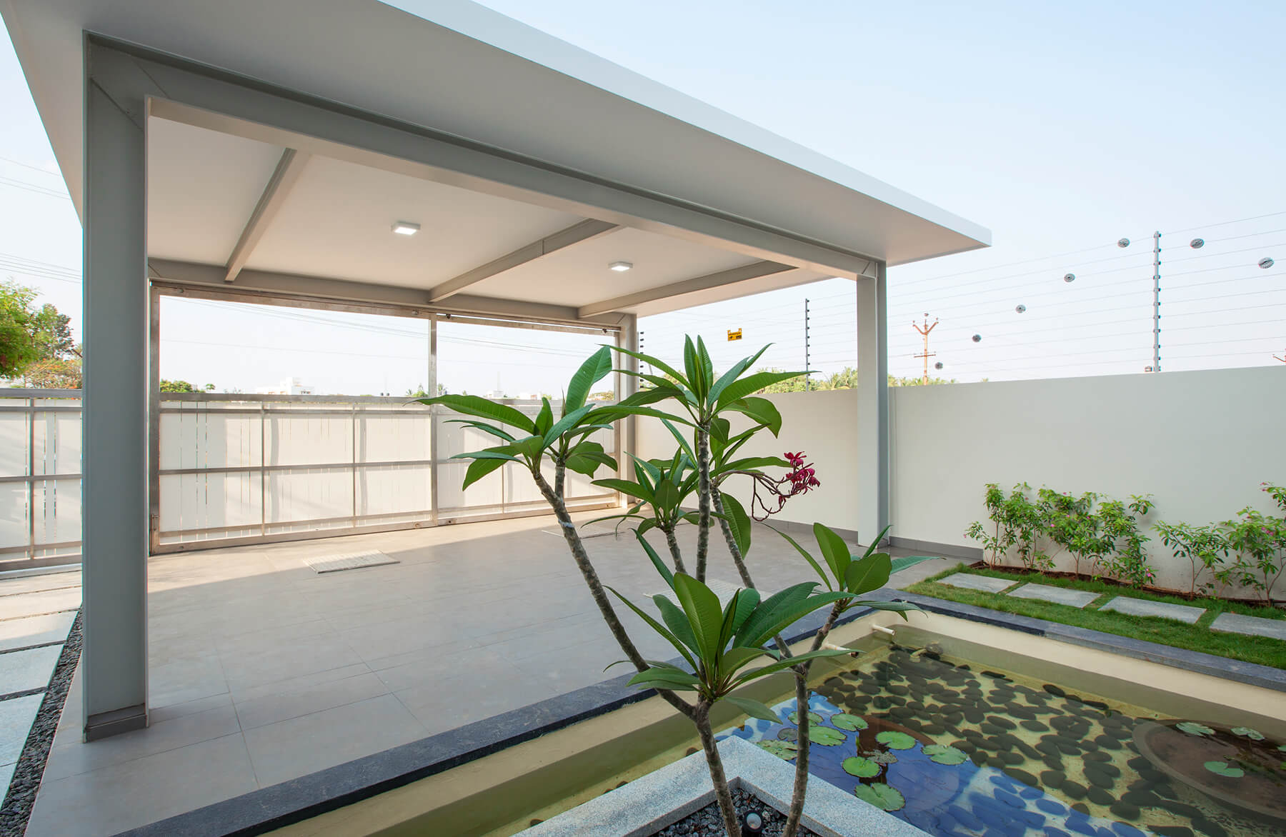 The residence embodies dualities in spatial function. Designed for a social family of four based in Coimbatore, each space acts both private and public in accordance with the occupiers. The minimalistic design approach allows for this state of spatial equilibrium.