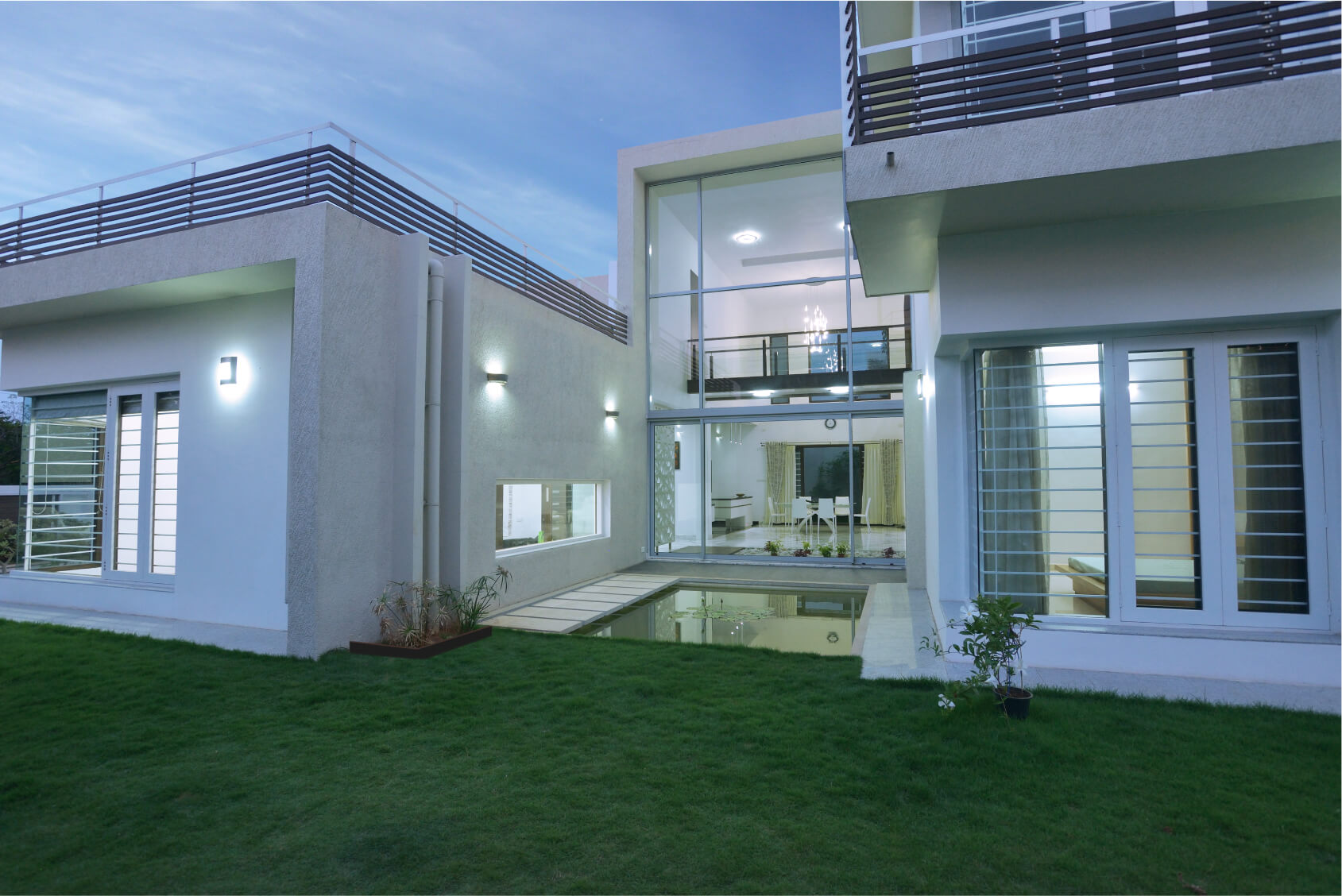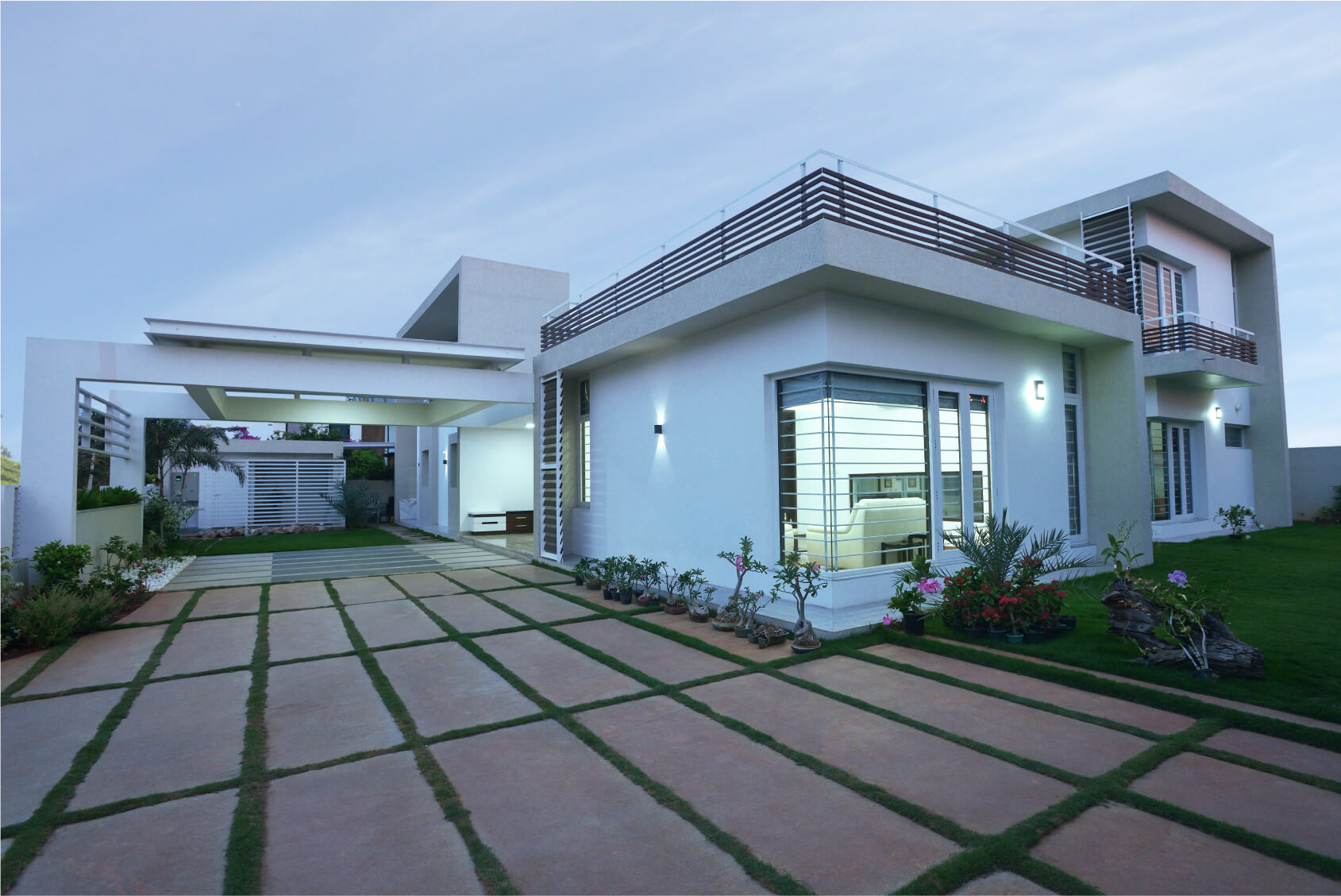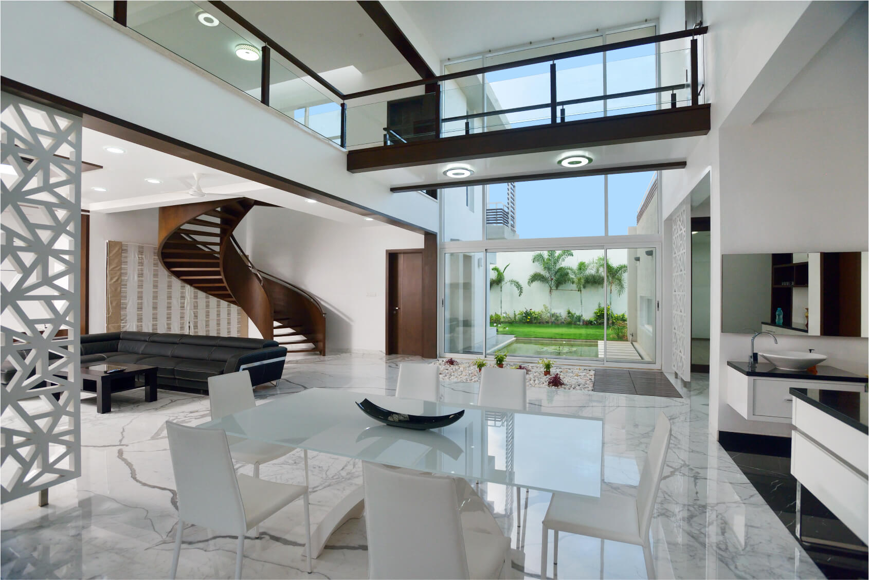 The residence embodies dualities in spatial function. Designed for a social family of four based in Coimbatore, each space acts both private and public in accordance with the occupiers. The minimalistic design approach allows for this state of spatial equilibrium.