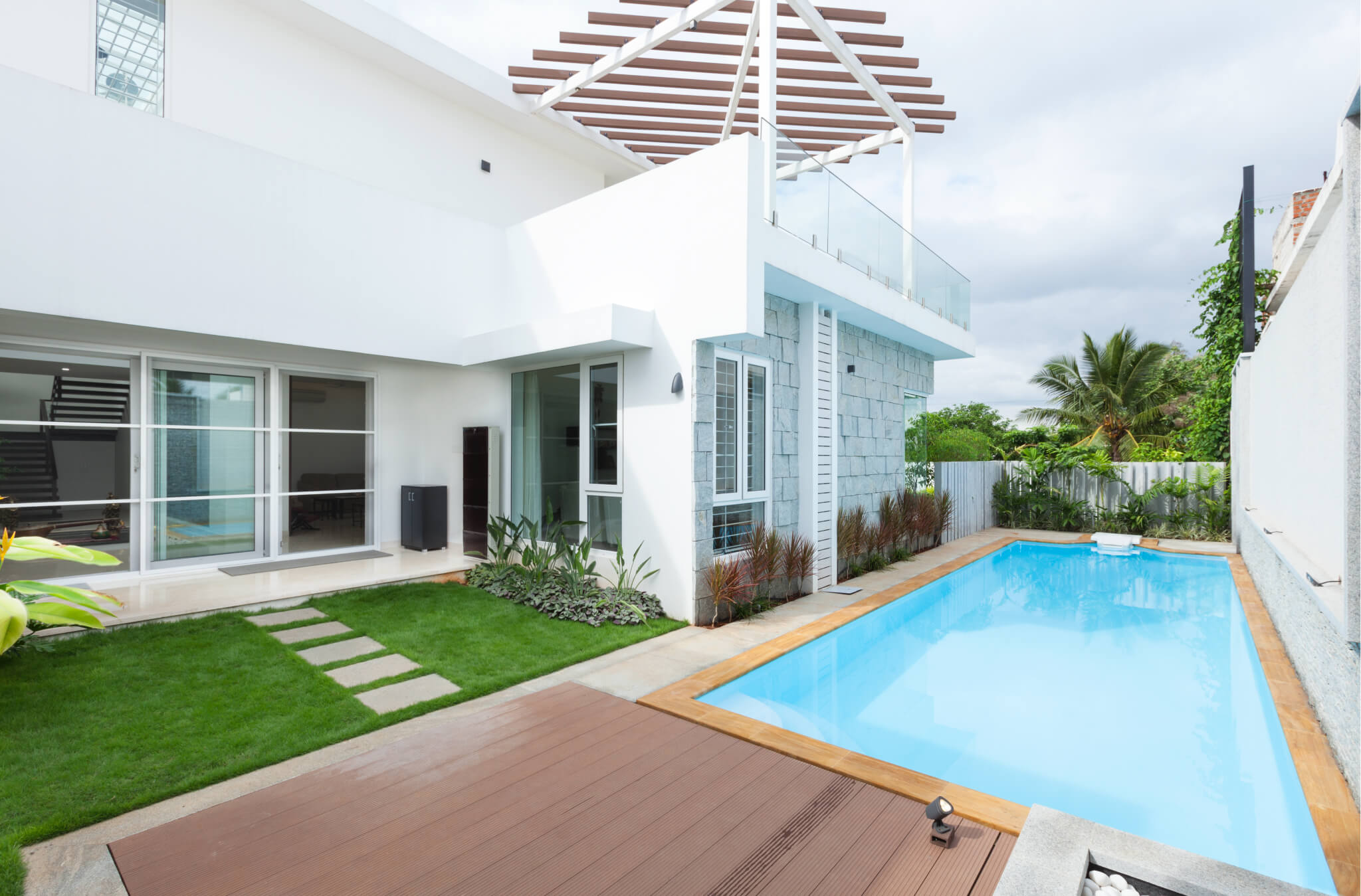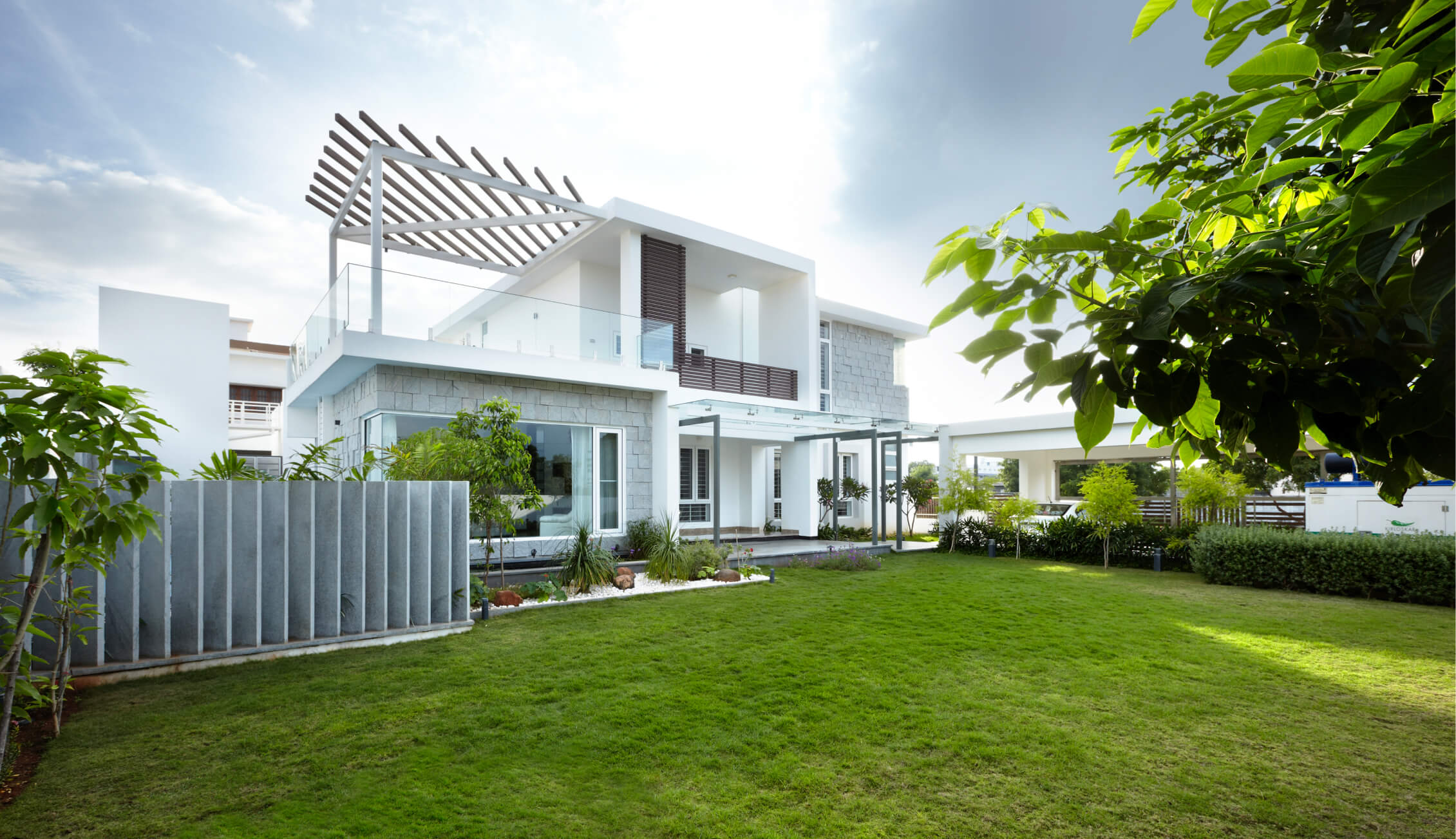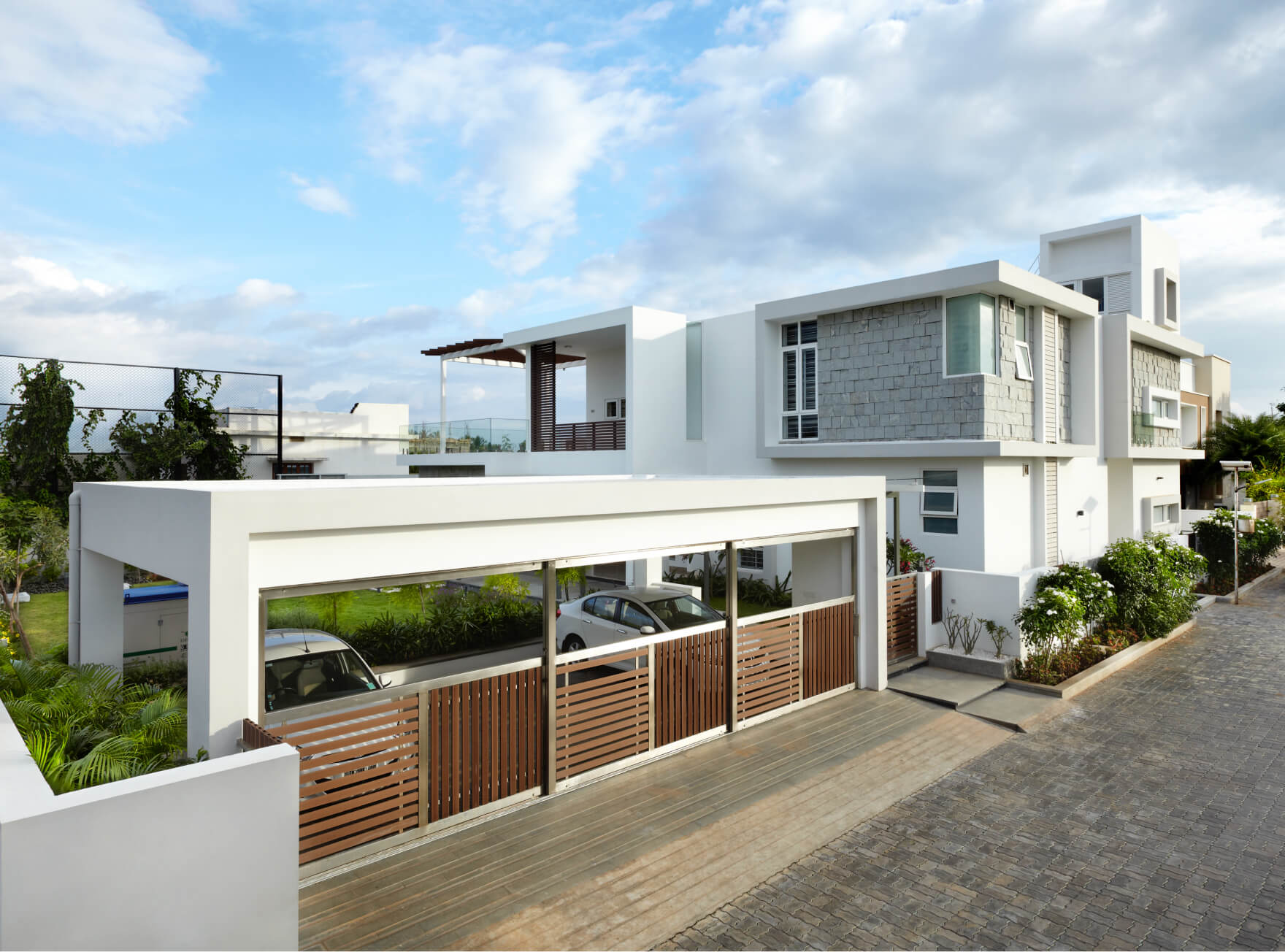 The residence embodies dualities in spatial function. Designed for a social family of four based in Coimbatore, each space acts both private and public in accordance with the occupiers. The minimalistic design approach allows for this state of spatial equilibrium.